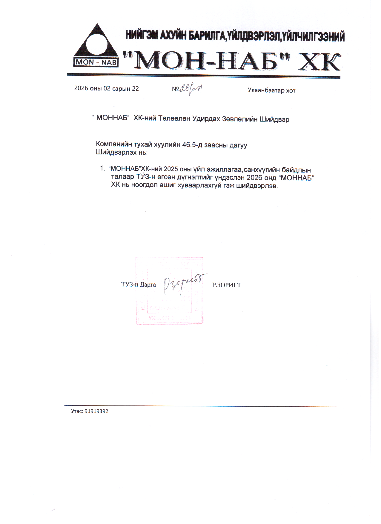 2025 хувьцаа эзэмшигчдийн ээлжит хурлын  тогтоол