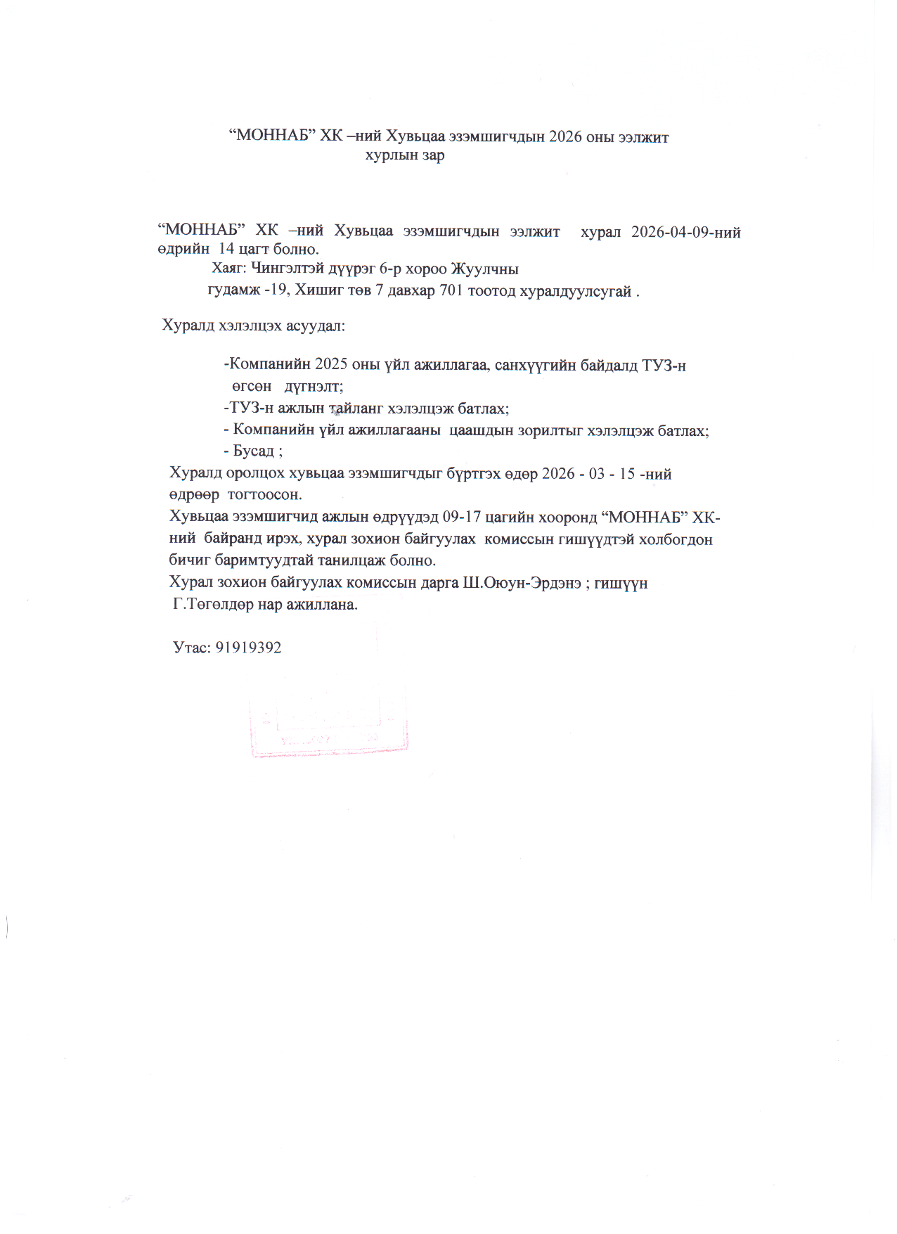Хурлын зар